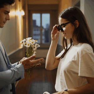 “Guess which hand,” he said. Her head tilted, the way a bird listens to weather. The hallway outside her apartment held the cool…