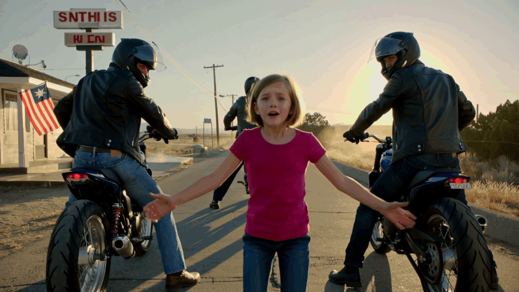 Late summer in Kentucky meant the cicadas were tuning up. Heat hung low enough you could taste it. They’d just rolled past an abandoned Sinclair with a rusted dinosaur sign when the shape appeared—pink and small and moving too fast to make sense. Jack chopped the throttle, weight tipping forward. Milo’s shout came from behind—“Kid, kid!”—and then there was the scrape of rubber, the long hiss of tires finding a grip they weren’t sure they had, and the girl stood in the road with her arms out like she could stop three Harley‑Davidsons with the will of an eight‑year‑old.