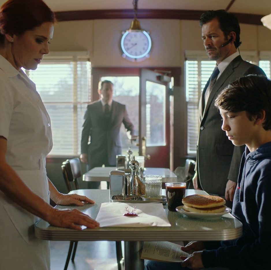 He always sat in the corner booth under the humming neon clock, the one that lost two minutes a day and made the breakfast rush feel like a small, forgivable lie. Same time, same order. Two pancakes, no butter. Black coffee he never touched. Maybe twelve years old, tops, and never any parents. Never anyone. Never a ride waiting outside. Never a backpack big enough for schoolbooks.