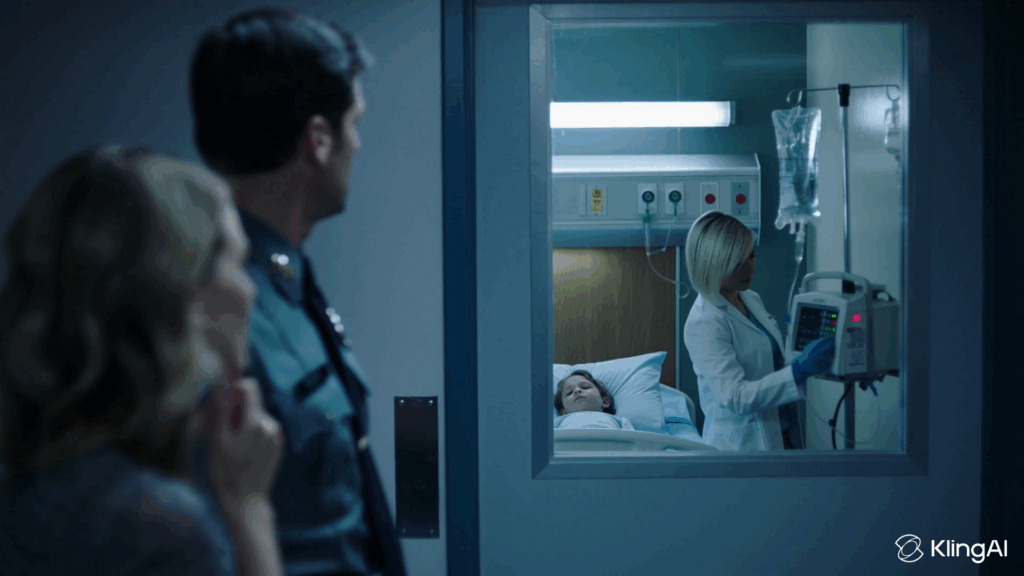 Through the glass, Ethan slept, his mouth open a fraction, one hand in command of a corner of blanket. A woman in a white coat stood at the IV pole. She had the neatness of someone who gets what she wants because she has rehearsed wanting. Her dark hair was twisted into a low bun; a clip held the stray bits hostage. The hand holding the syringe moved with precision, a pianist’s confidence in a dangerous key.