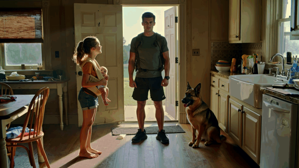 The kitchen door opened. Evan’s breath came in hard, eager pulls. He was not a man who understood silence. Max stood between the intruder and the hallway, hackles raised, not barking now. Daniel said, “You need to leave,” and the strange thing was how calm he sounded.